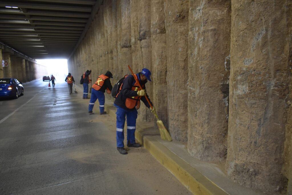 De este modo se refuerza el trabajo de limpieza integral que constantemente realizan las Direcciones de Limpia y Aseo Público, así como de Parques y Jardines, especialmente en zonas de mayor afluencia, en donde por la naturaleza de su construcción acumulan algunos desechos y que además se ven afectados con la pinta de grafiti.