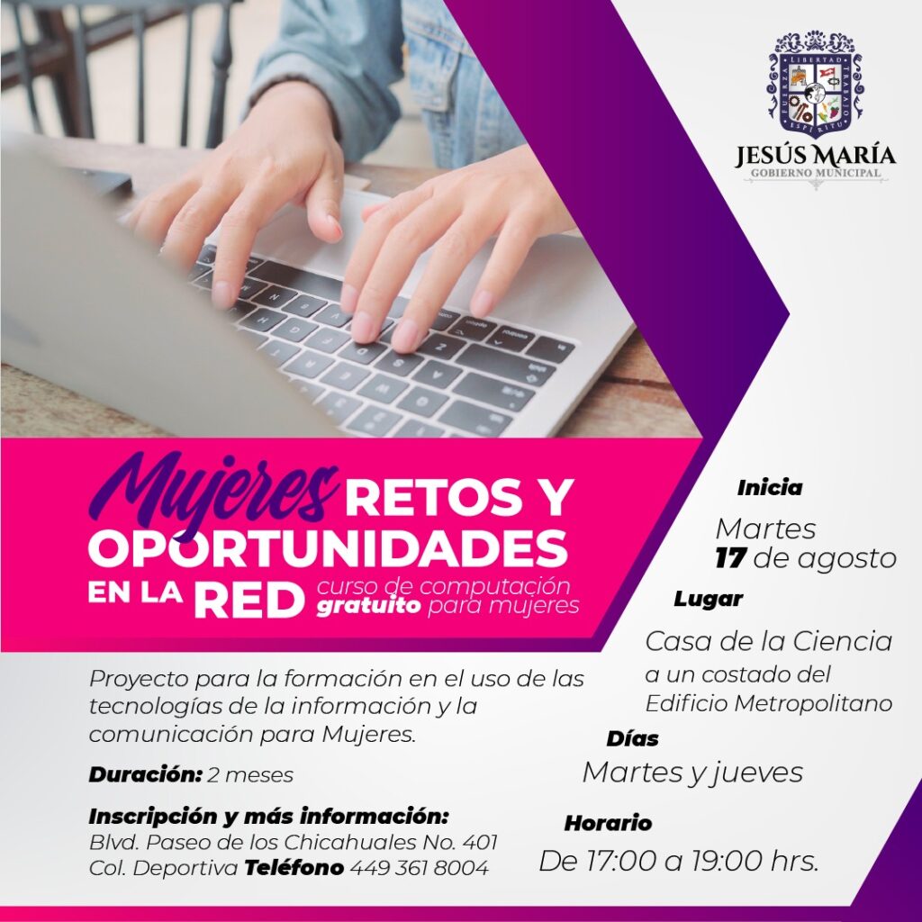 “Mujeres Retos y Oportunidades en la Red””, es el curso gratuito que facilitará la Instancia de la Mujer de Jesús María para las mujeres del municipio que deseen participar, informó la titular Martina Garza Martínez.