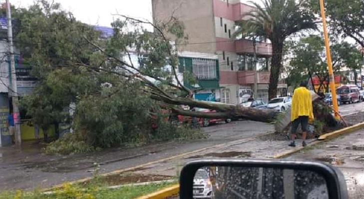 Caída de árboles, espectaculares y postes, deja lluvia de este miércoles en Aguascalientes