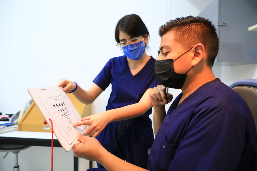 El Mtro. Luis Héctor Salas Hernández, jefe del Departamento de Optometría del Centro de Ciencias de la Salud (CSS), compartió que, quienes requieren el servicio, son atendidos en el Área de Refracción en donde se tiene el primer contacto con el paciente y se determina si es necesario el uso de lentes de armazón, de contacto, posibles enfermedades infecciosas, o bien, terapia visual.