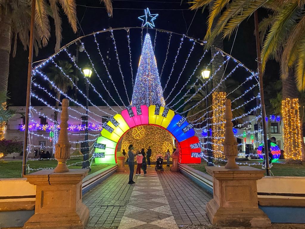 Al finalizar la ceremonia, las autoridades municipales realizaron el encendido de las luces navideñas, acto que estuvo acompañado de un espectáculo de pirotecnia musical y música vernácula.
