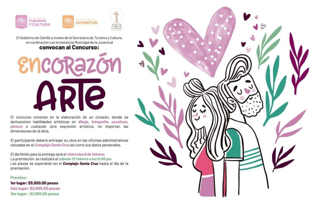 El Gobierno de Calvillo a través de la Secretaría de Turismo y Cultura en coordinación con la Instancia Municipal de Juventud convocan a los jóvenes a participar en el concurso EnCorazón Arte.