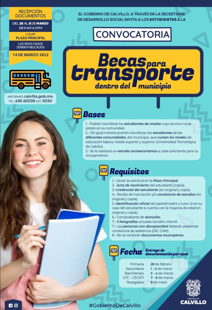 CONVOCATORIA para becas de transporte en el municipio de Calvillo.