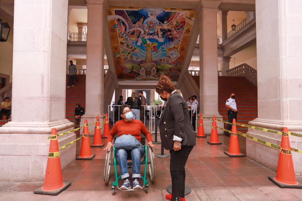 En esta ocasión ciudadanos que acudieron a realizar alguna gestión participaron en una dinámica de convivencia utilizando implementos como bastones y sillas de ruedas, experimentando discapacidad visual y motriz, para fomentar el valor de la inclusión.