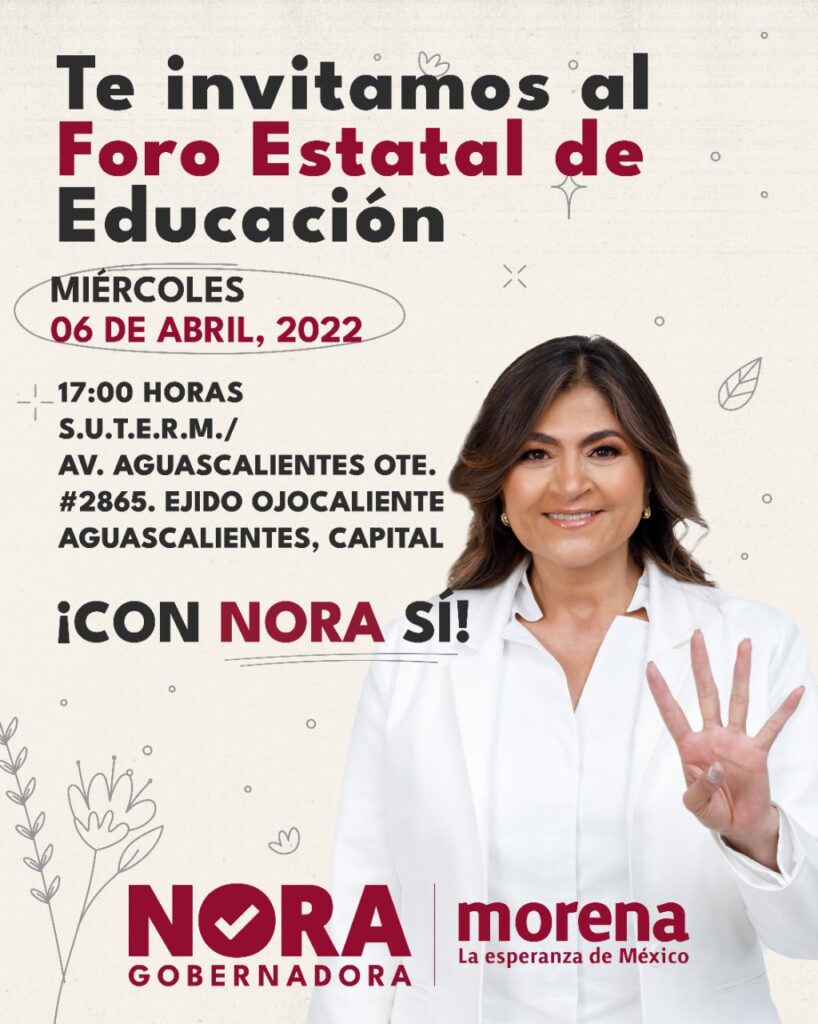 Invita la candidata por MORENA al gobierno del estado, Nora Ruvalcaba, al Foro Estatal de Educación con miras a generar una estrategia conjunta para atender y resolver los problemas en sector en la próxima administración estatal.
