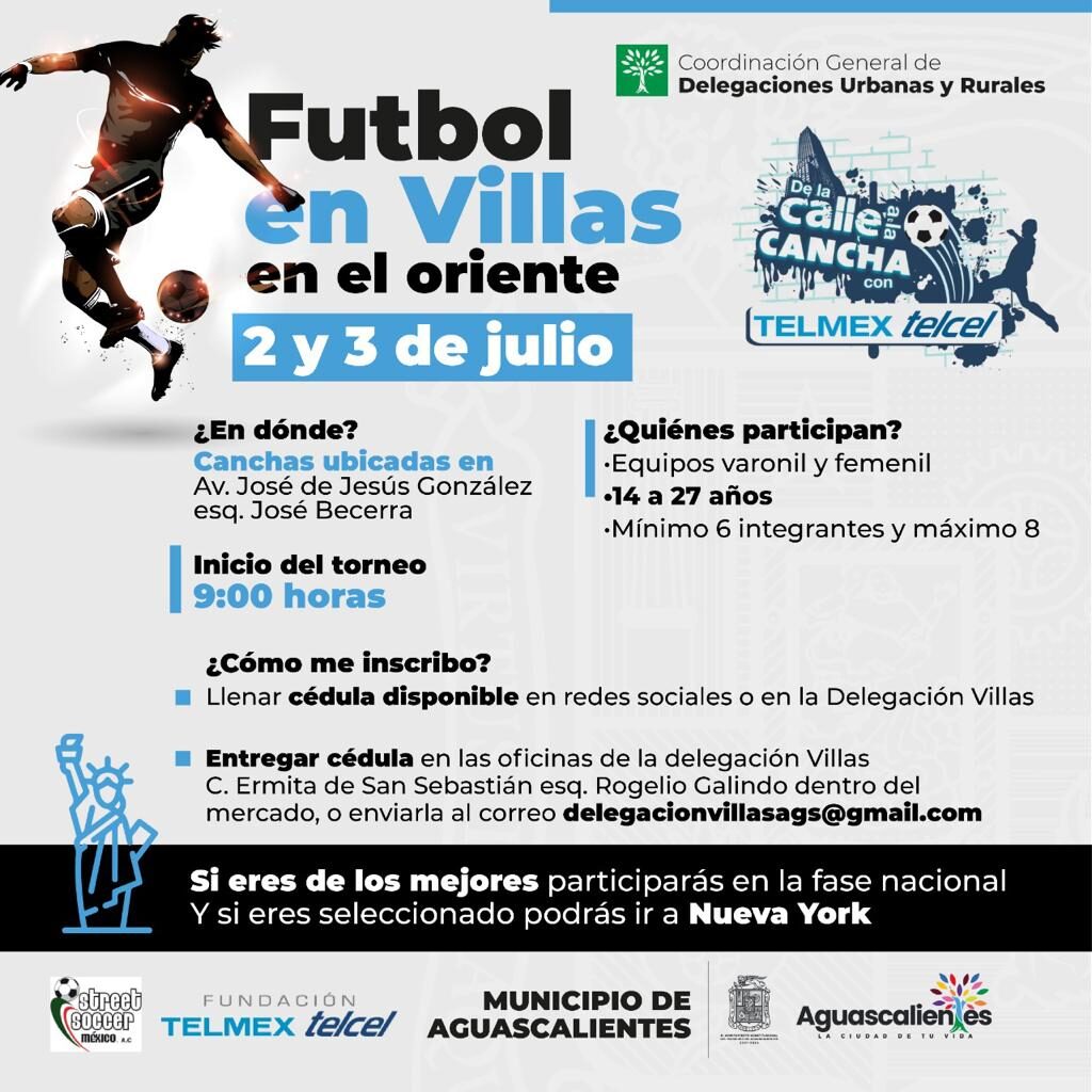 Omar Ruiz Vázquez, titular de la Delegación Villas, reiteró que el equilibrio físico, emocional y una vida sana son necesarios para el desarrollo integral, y explicó que en el torneo relámpago «De la Calle a la Cancha», se buscará seleccionar el 2 y 3 de julio en las canchas ubicadas en las avenidas José de Jesús González y José Becerra en esta parte del oriente de la ciudad, a los mejores jugadores de 14 a 27 años para integrar el representativo estatal en la rama varonil y femenil que se disputará en la ciudad de Puebla y posteriormente los seleccionados pasarán al mundial de Nueva York.