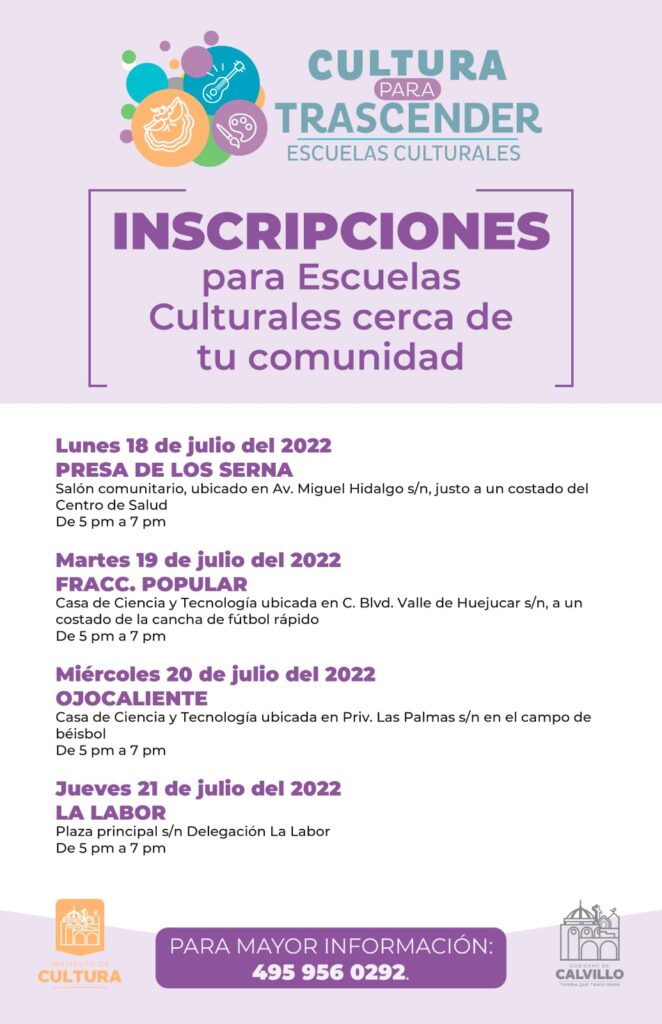 💃🏻🎨🤸🏻‍♀️ 🎶𝘾𝙪𝙡𝙩𝙪𝙧𝙖 𝙥𝙖𝙧𝙖 𝙏𝙧𝙖𝙨𝙘𝙚𝙣𝙙𝙚𝙧 Quedan abiertas las inscripciones para las 𝙀𝙨𝙘𝙪𝙚𝙡𝙖𝙨 𝘾𝙪𝙡𝙩𝙪𝙧𝙖𝙡𝙚𝙨, revisa las fechas de tu delegación y no te quedes fuera. 📞Mayor información: 495 956 0292