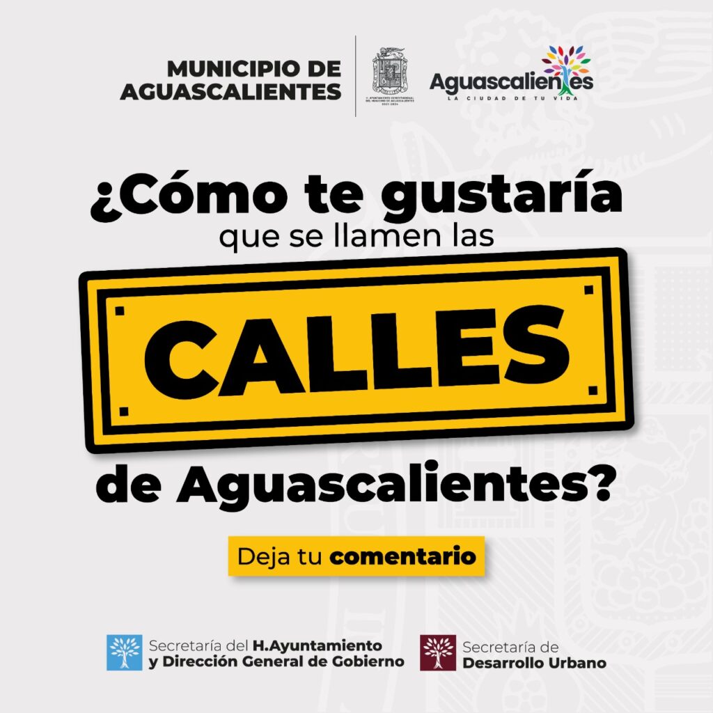 Municipio convoca a ponerle nombre a las calles de Aguascalientes; info en facebook.com/sedumAGS