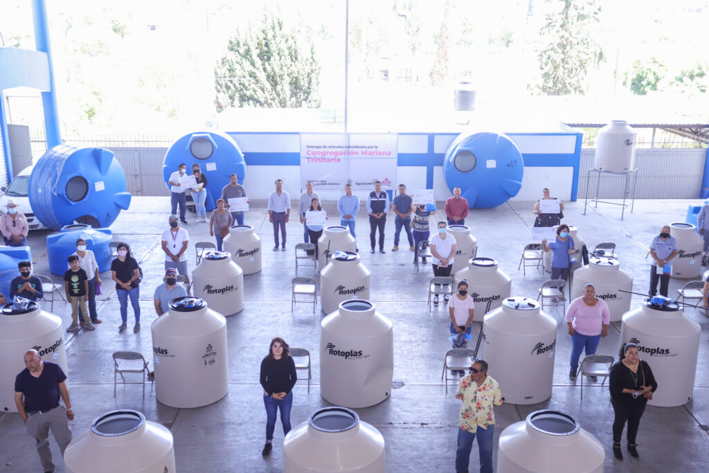 Leonardo Montañez, presidente municipal de Aguascalientes asistió al evento en el que mediante la Congregación Mariana Trinitaria se entregaron tinacos, cisternas y bombas de agua a 42 familias en la delegación Santa Anita, quienes contarán con viviendas mejor equipadas.