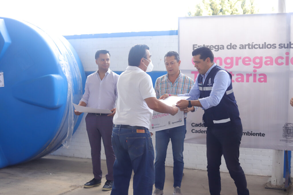 Leonardo Montañez, presidente municipal de Aguascalientes asistió al evento en el que mediante la Congregación Mariana Trinitaria se entregaron tinacos, cisternas y bombas de agua a 42 familias en la delegación Santa Anita, quienes contarán con viviendas mejor equipadas.