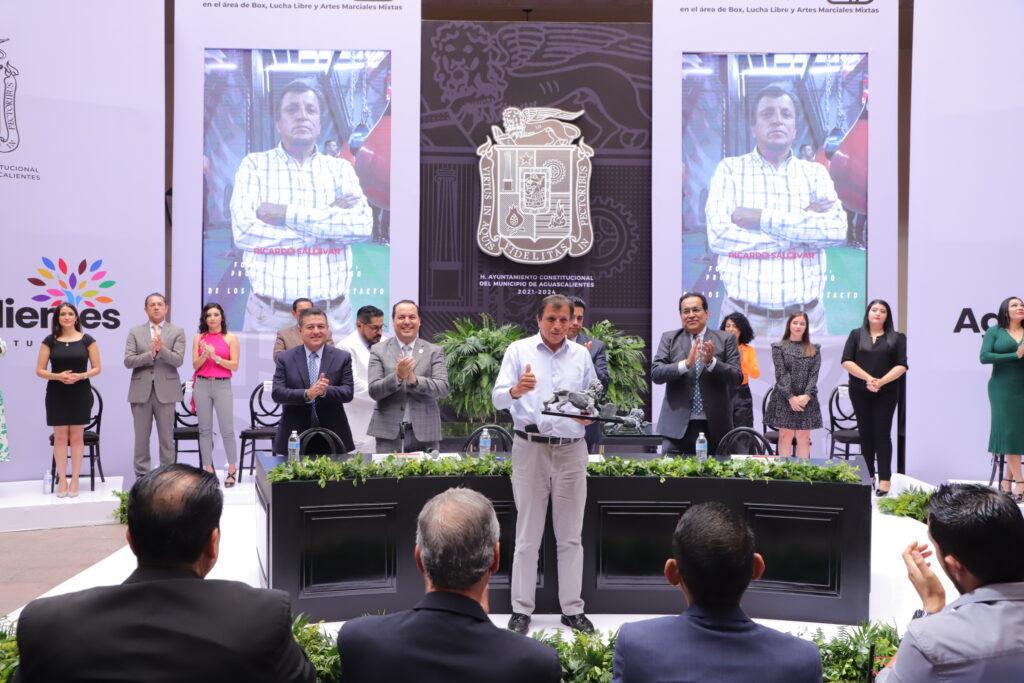 En Sesión Extraordinaria de Cabildo, el H. Ayuntamiento de Aguascalientes encabezado por el presidente municipal, Leonardo Montañez, entregó el Premio Municipal al Mérito Guerrero Azteca 2022, reconociendo a talentosos deportistas en box, lucha libre y artes marciales mixtas.
