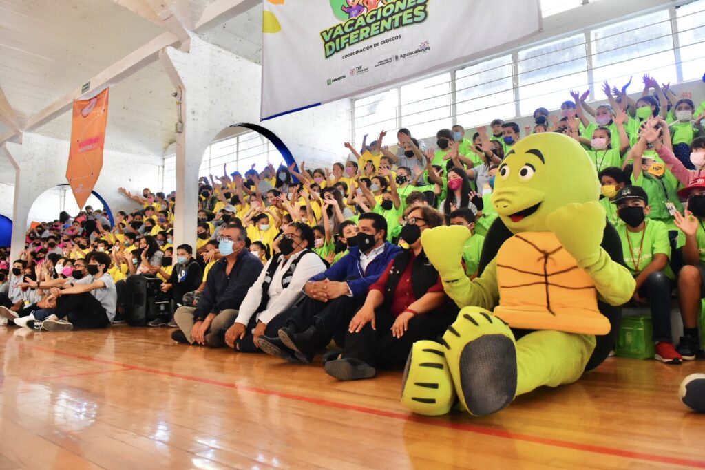 El presidente municipal de Aguascalientes, Leonardo Montañez inauguró las actividades del curso de verano «Vacaciones Diferentes 2022» que organizan el DIF Municipal de Aguascalientes y la Secretaría de Medio Ambiente y Desarrollo Sustentable (SEMADESU), en donde participan 700 niñas y niños, de 4 a 12 años de edad en los Centros de Desarrollo Comunitario (CEDECO) Universidad, Ojocaliente y Rodolfo Landeros.