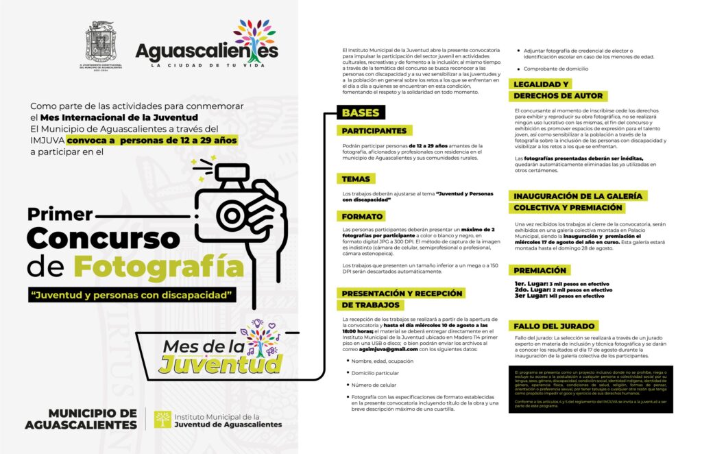 Como parte de las actividades para conmemorar el Mes Internacional de la Juventud, el Municipio de Aguascalientes invita a participar en el primer concurso de fotografía «Juventud y Personas con Discapacidad».
