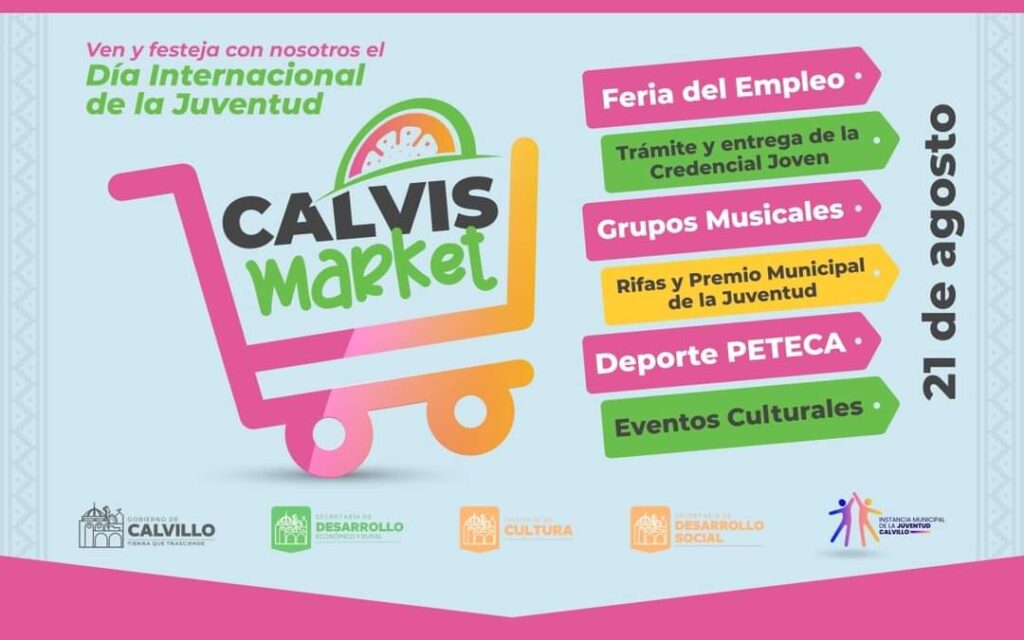 ✅️Este 21 de agosto celebra en #Calvillo el Día Internacional de la Juventud donde tendremos muchas actividades, además de nuestro gran 𝗖𝗮𝗹𝘃𝗶𝘀 𝗠𝗮𝗿𝗸𝗲𝘁, ¡te esperamos! 📌Plaza Principal de Calvillo a partir de las 12:00m.