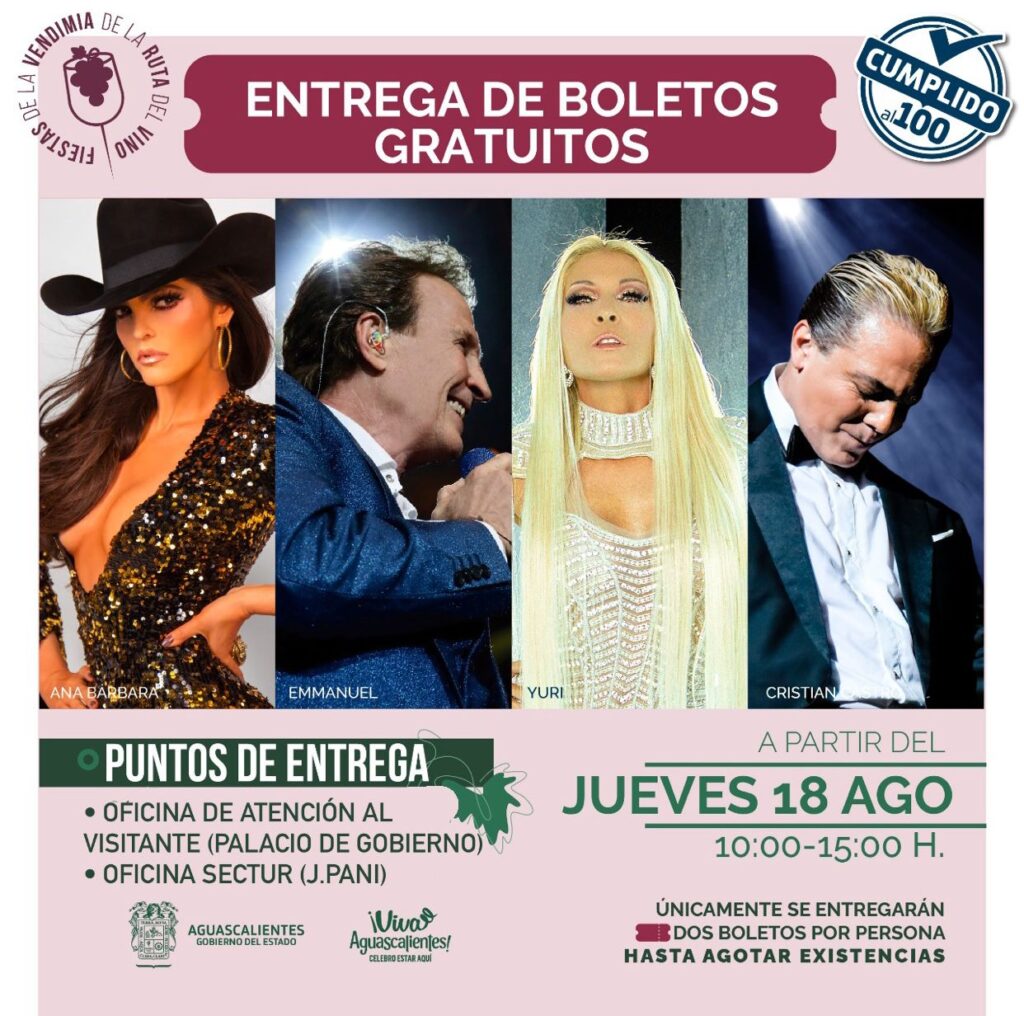 Se entregarán dos boletos por persona para un concierto a elegir, hasta agotar existencias.