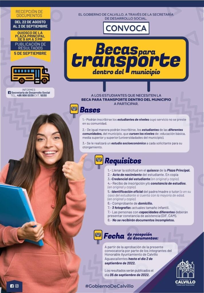 ๐โ ๐ ๐๐ฒ๐ฐ๐ฎ๐ ๐ฝ๐ฎ๐ฟ๐ฎ ๐๐ฟ๐ฎ๐ป๐๐ฝ๐ผ๐ฟ๐๐ฒ Convocatoria dirigida a los estudiantes que necesiten la beca para transporte dentro del municipio: La recepciรณn de documentos se llevarรก a cabo de manera permanente del ๐๐ ๐๐ฅ ๐๐ ๐๐ ๐๐ ๐จ๐ฌ๐ญ๐จ para nivel bachillerato y universidad y para Primaria, Secundaria y CAM del ๐๐ ๐๐ฅ ๐๐ ๐๐ ๐ฌ๐๐ฉ๐ญ๐ข๐๐ฆ๐๐ซ๐, de 9:00am a 3:00 pm.