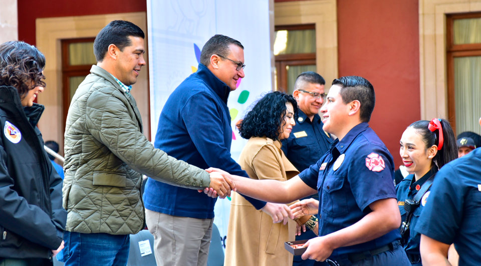 La mañana de este miércoles, el presidente municipal, Leonardo Montañez realizó un reconocimiento por su valentía y entrega a los integrantes de la Coordinación Municipal de Protección Civil y dio a conocer que en esta administración se ha hecho una inversión histórica al destinar más de 15 millones de pesos en la adquisición de equipamiento de protección personal y vehículos, con el propósito de darles mejores herramientas para brindar un servicio oportuno y eficiente en las tareas de salvaguardar la vida y el patrimonio de los habitantes de la ciudad capital.
