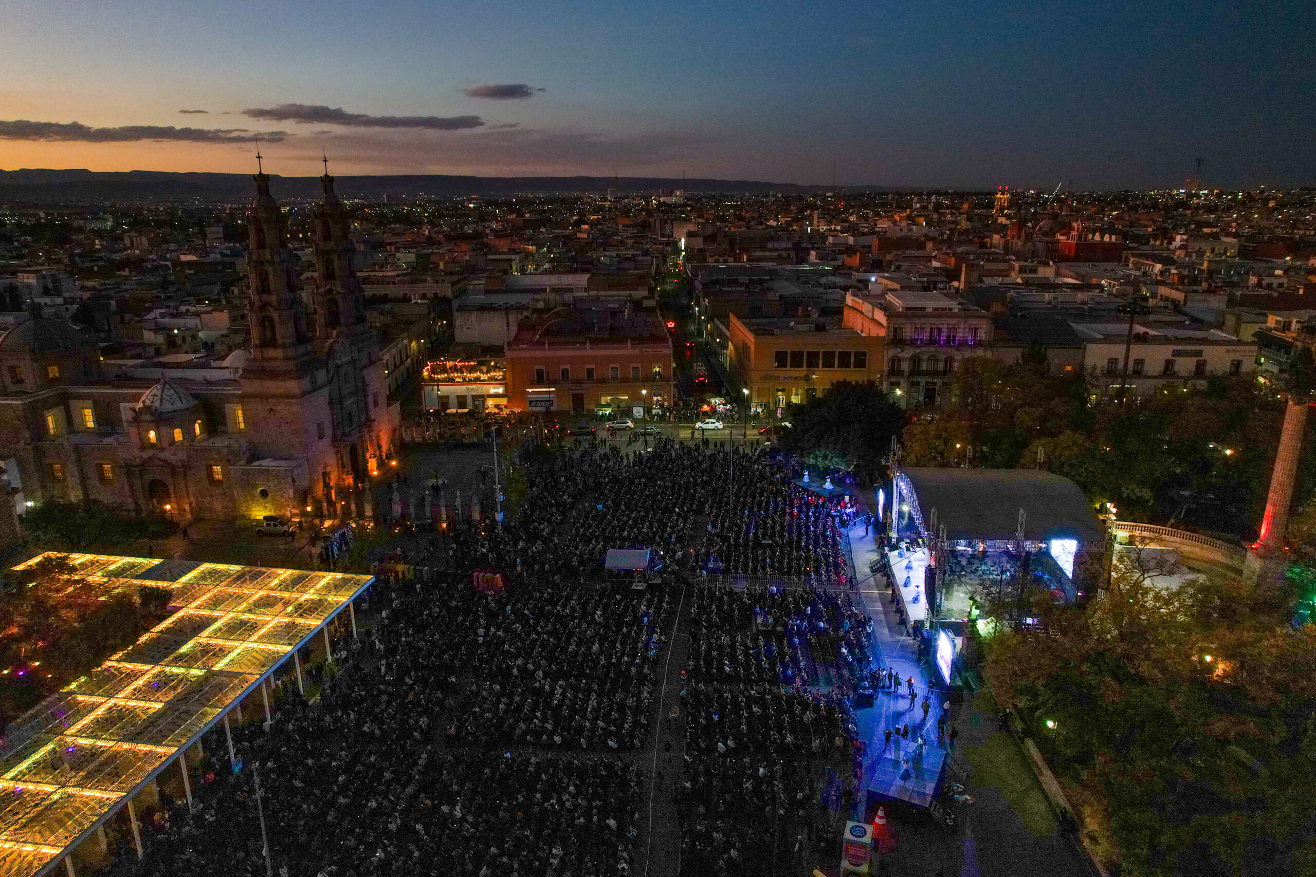 En el marco de este importante evento que se llevó a cabo en la Plaza de la Patria, se contó con la participación del maestro José María Napoleón quien, acompañado de la Orquesta Sinfónica de Aguascalientes, interpretó sus principales éxitos. Los ahí reunidos también pudieron disfrutar la presentación de más de 100 artistas locales que deleitaron al público con bailes y música patrimonial del estado.