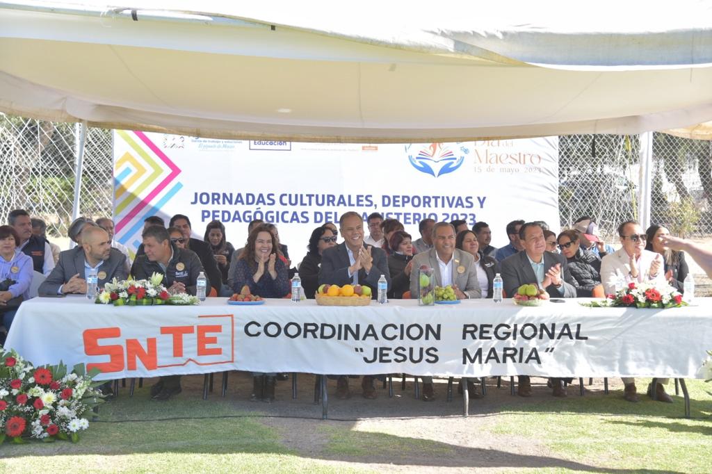 El presidente municipal de Jesús María, José Antonio Arámbula, asistió a la inauguración de las Jornadas Culturales, Deportivas y Pedagógicas del Magisterio 2023, en donde acompañó a las maestras y maestros que laboran en el territorio jesusmariense.