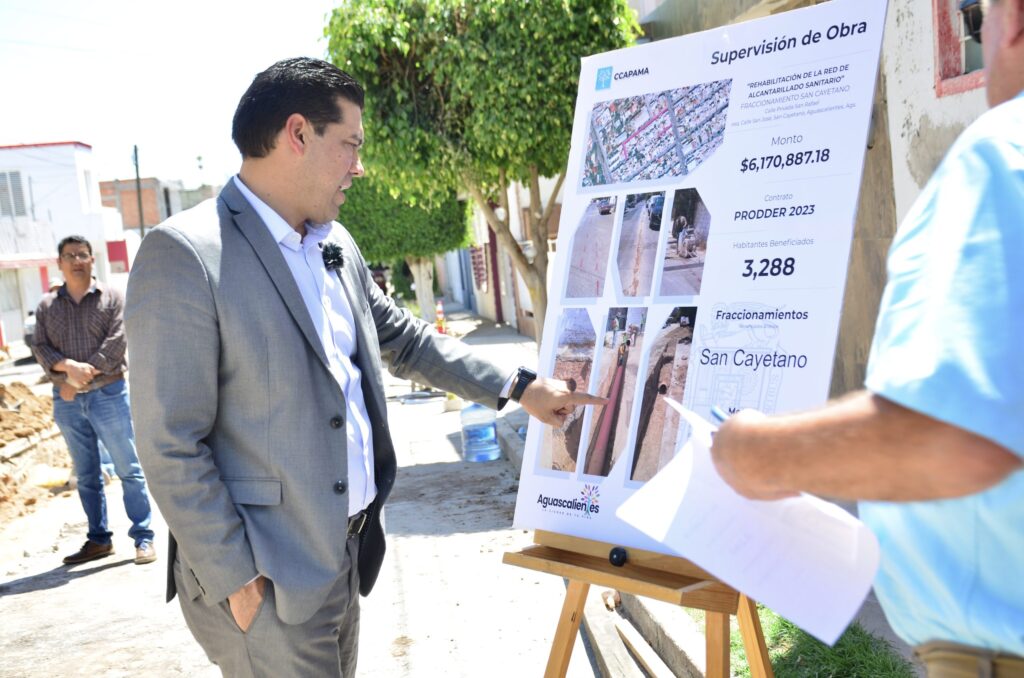 El presidente municipal de Aguascalientes, Leo Montañez, encabezó un recorrido de supervisión de las obras de rehabilitación de la red de alcantarillado sanitario en el fraccionamiento San Cayetano, proyecto que representa una inversión superior a los 6 millones 100 mil pesos.