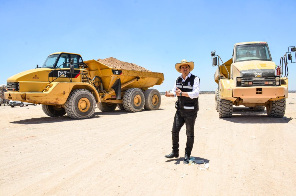 El presidente municipal, Leo Montañez, realizó una visita al relleno sanitario San Nicolás, en donde en compañía del secretario Carlos España Martínez, titular de la Secretaría de Servicios Públicos, llevaron a cabo un recorrido con la finalidad de presentar el camión trascabo 936 que fue rehabilitado para el apoyo óptimo en las actividades que se realizan para el correcto manejo de residuos.