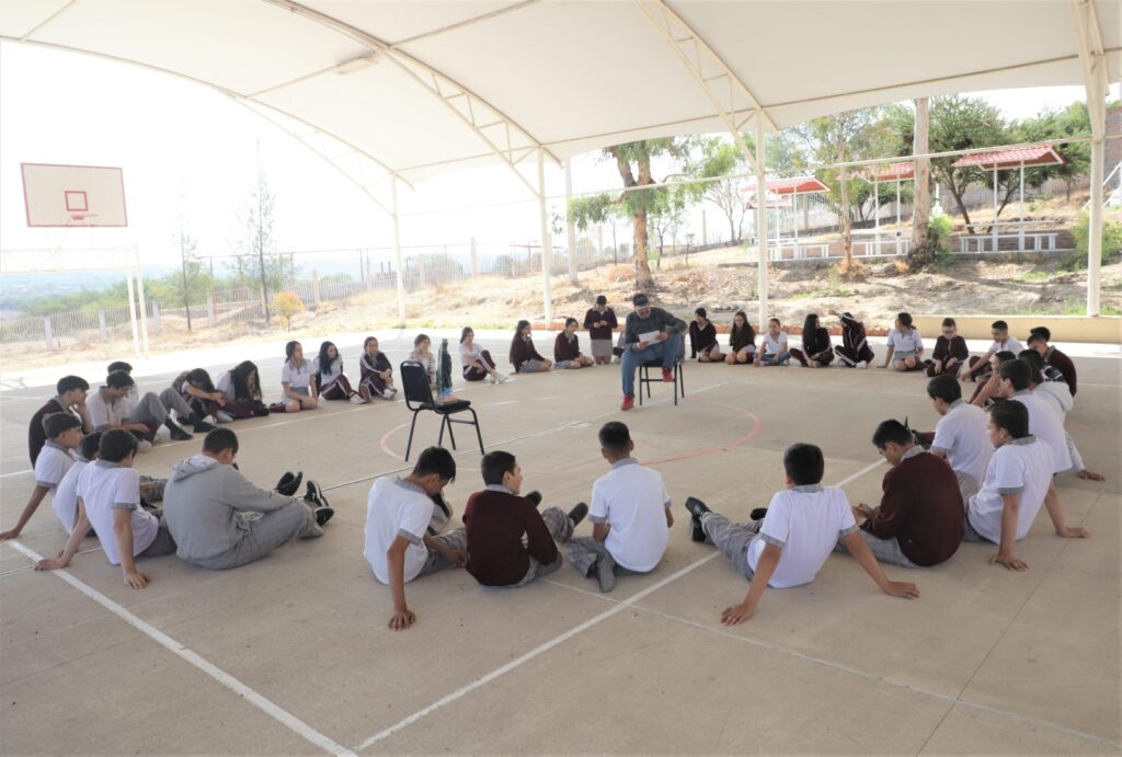 En particular, llevaron funciones del monólogo “Volver a decir el mar” y ciclos de lectura colectiva de “Pedro Páramo”, en Gracias a Dios y Tapias Viejas; “en el Plan de Desarrollo Municipal se establecen jornadas lúdicas para las escuelas, a través de las cuales se difundan los Derechos Humanos para las niñas, niños y adolescentes de Jesús María”, explicó Adriana Jurado Valadez.