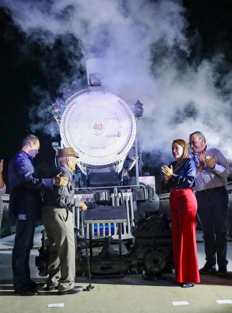 Tere Jiménez, gobernadora de Aguascalientes, develó la placa conmemorativa de la locomotora 40, donde reconoció a la industria ferrocarrilera y a sus trabajadores por ser la base para que el estado sea lo que es hoy: una entidad fuerte y segura, de los mejores lugares para desarrollar negocios.