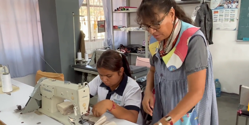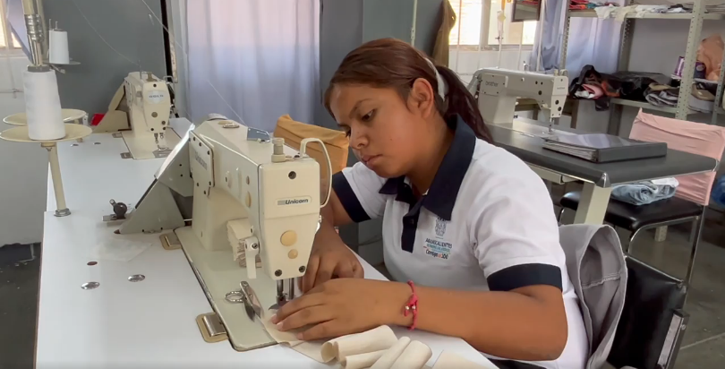 Ejemplo de ello es Álvaro, quien cursa sus estudios en el taller de costura, con la ayuda de su maestra y sus compañeros desarrolla habilidades socioemocionales y se capacita en el manejo de máquinas industriales.