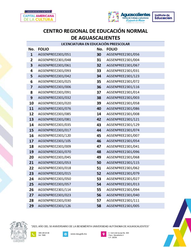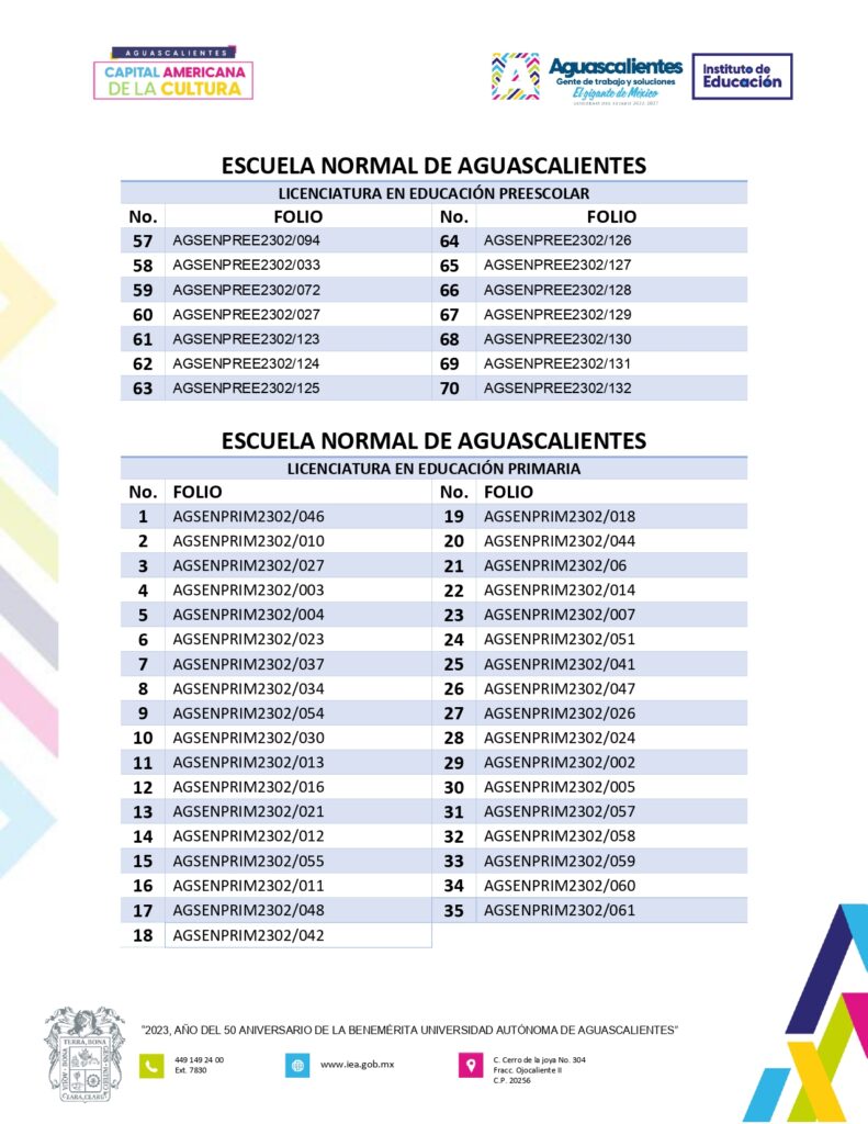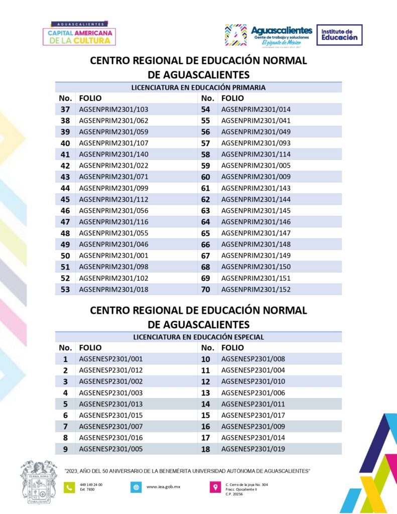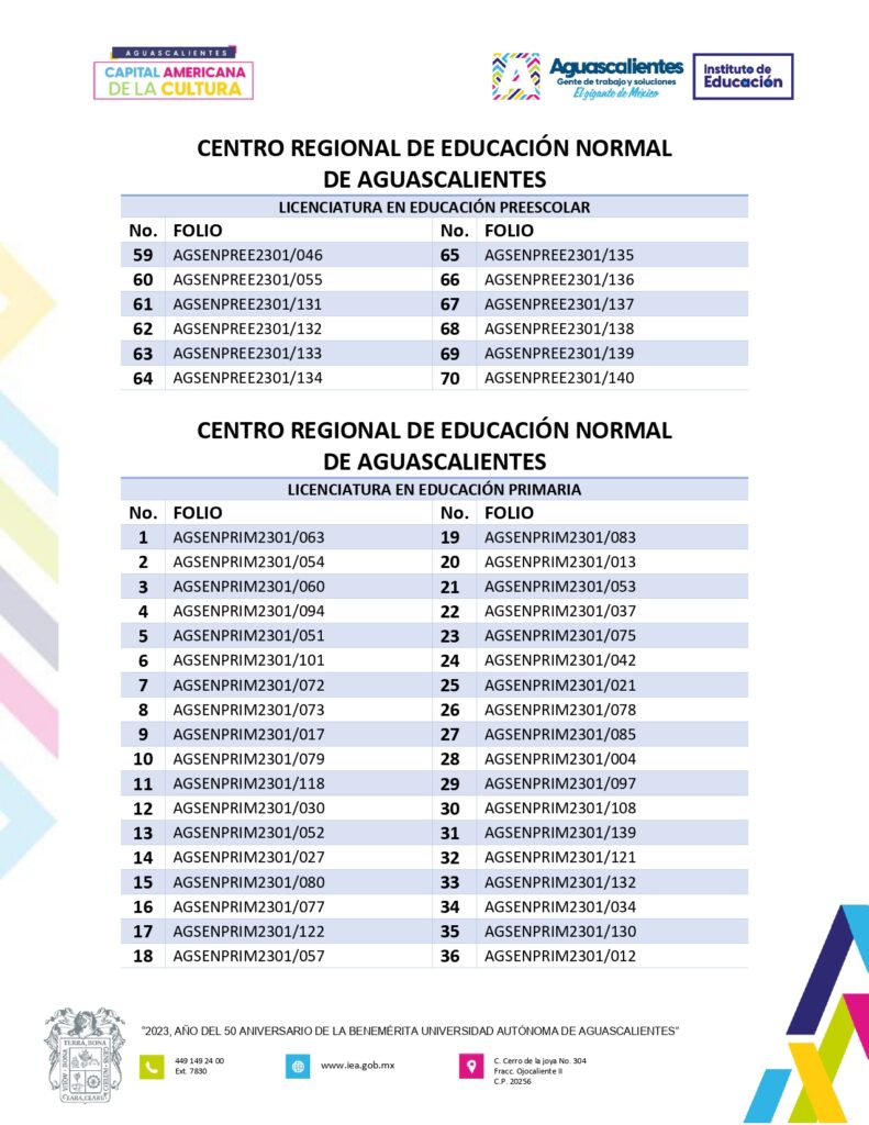 Finalmente estan aquí. El Instituto de Educación de Aguascalientes (IEA) publicó los resultados del proceso de selección de los alumnos de nuevo ingreso a las Escuelas Normales y la Universidad Pedagógica Nacional Unidad 011 para el Ciclo Escolar 2023-2024.