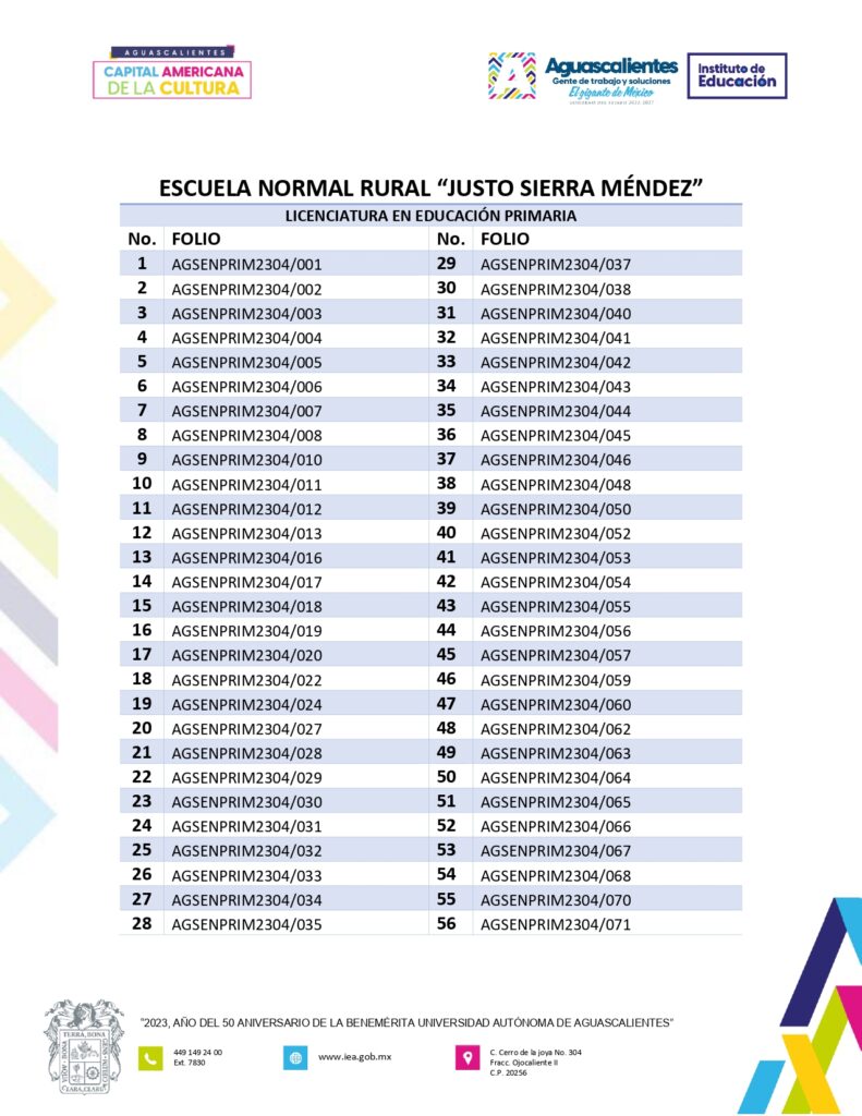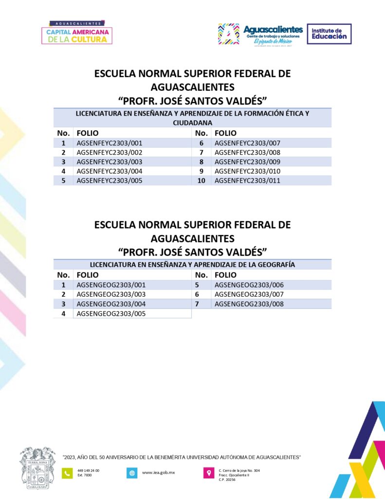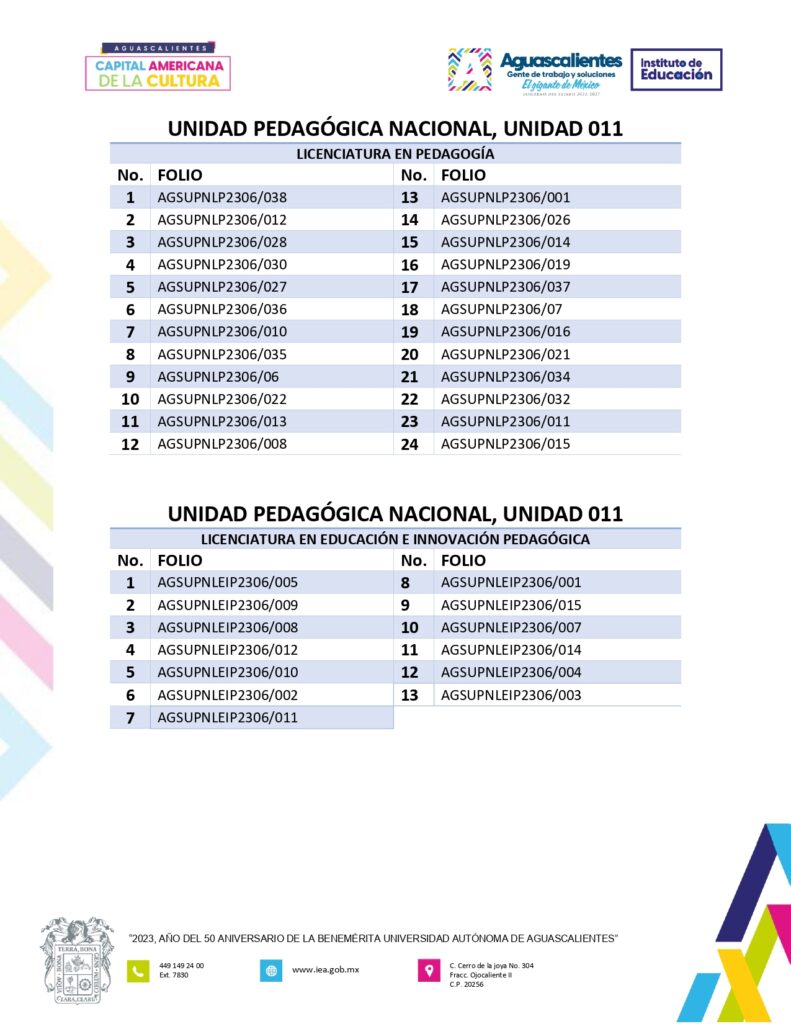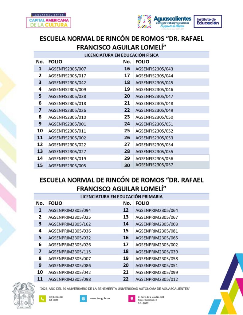 Finalmente estan aquí. El Instituto de Educación de Aguascalientes (IEA) publicó los resultados del proceso de selección de los alumnos de nuevo ingreso a las Escuelas Normales y la Universidad Pedagógica Nacional Unidad 011 para el Ciclo Escolar 2023-2024.