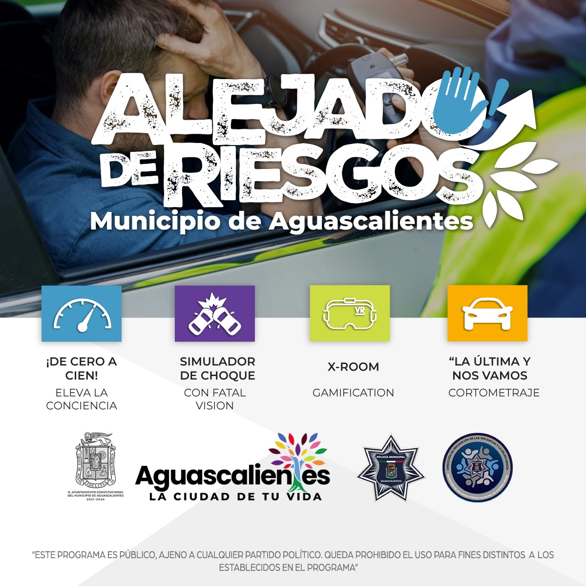 El Municipio de Aguascalientes presentó este miércoles, el programa de prevención «Alejado de Riesgos», impulsado a través de la Comisión de Seguridad Pública y la Secretaría de Seguridad Pública Municipal, cuyo principal objetivo es disminuir conductas derivadas del consumo de alcohol y otras sustancias nocivas.