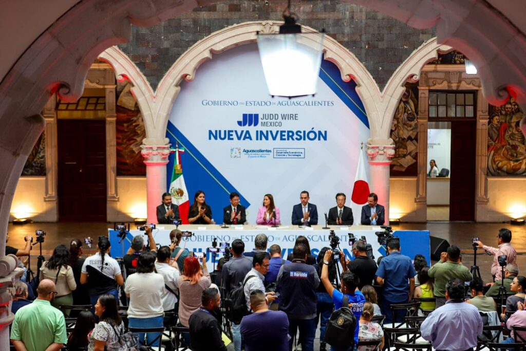 La gobernadora de Aguascalientes, Tere Jiménez, anunció el establecimiento de la empresa japonesa Judd Wire en la entidad, con una inversión superior a los 427 millones de pesos y la generación inicial de 300 nuevos empleos; dijo que esto es una muestra clara de la confianza que mantienen los inversionistas extranjeros en Aguascalientes.
