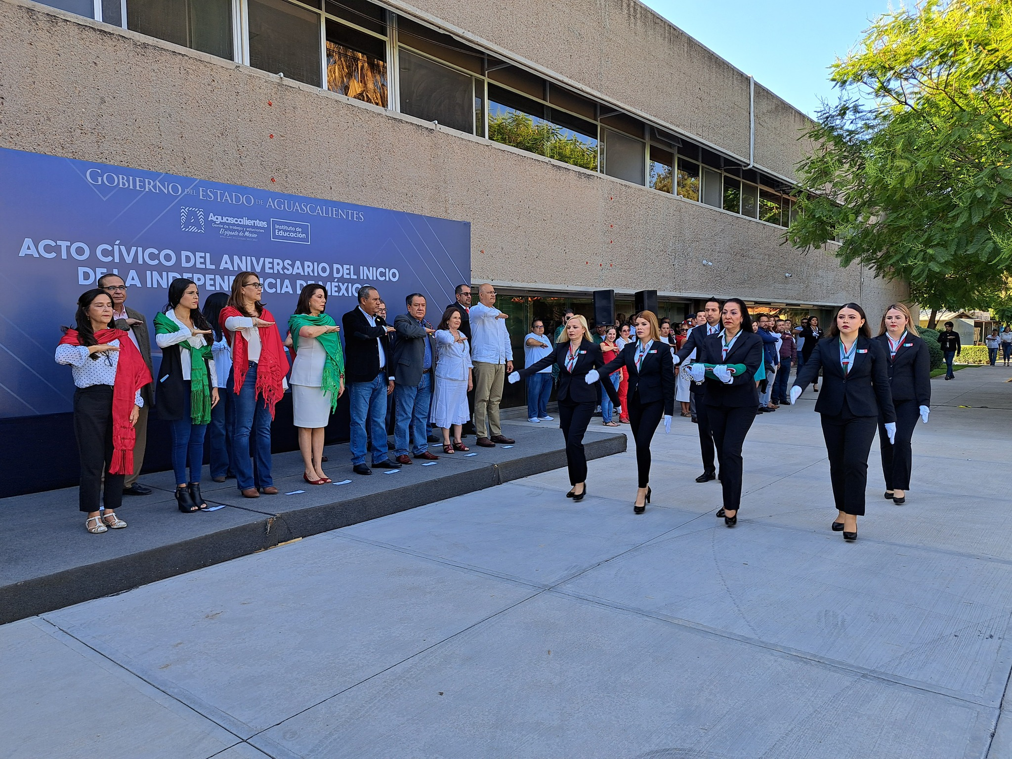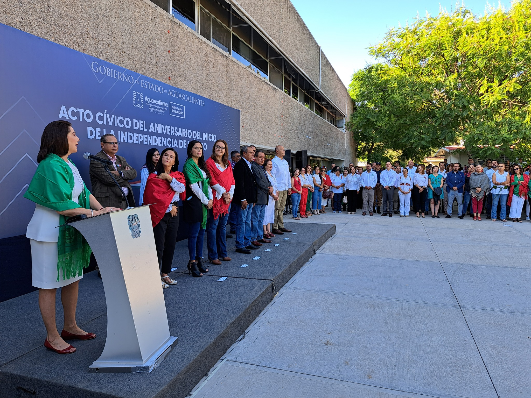 La directora del Instituto de Educación de Aguascalientes (IEA), Lorena Martínez encabezó la celebración de la Independencia de México en las instalaciones del IEA, con todo su equipo de colaboradores.
