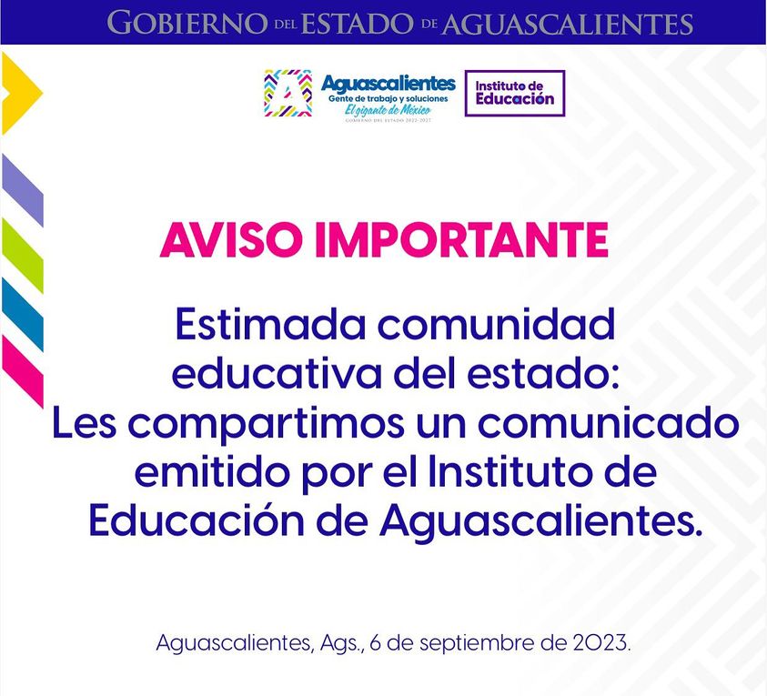 El Instituto de Educación de Aguascalientes informa a madres y padres de familia,docentes, personal directivo y de apoyo a la educación que, el día de hoy, el JuezQuinto de Distrito…