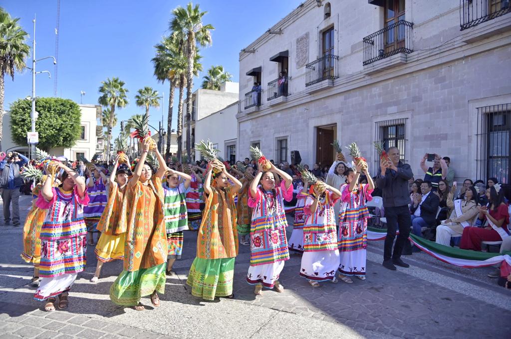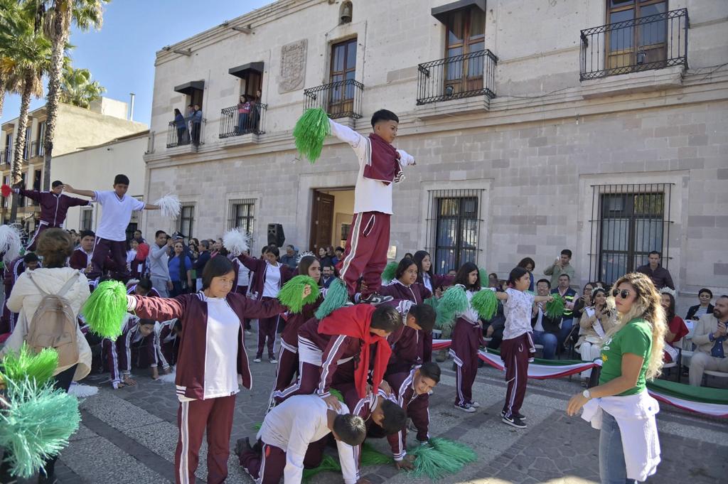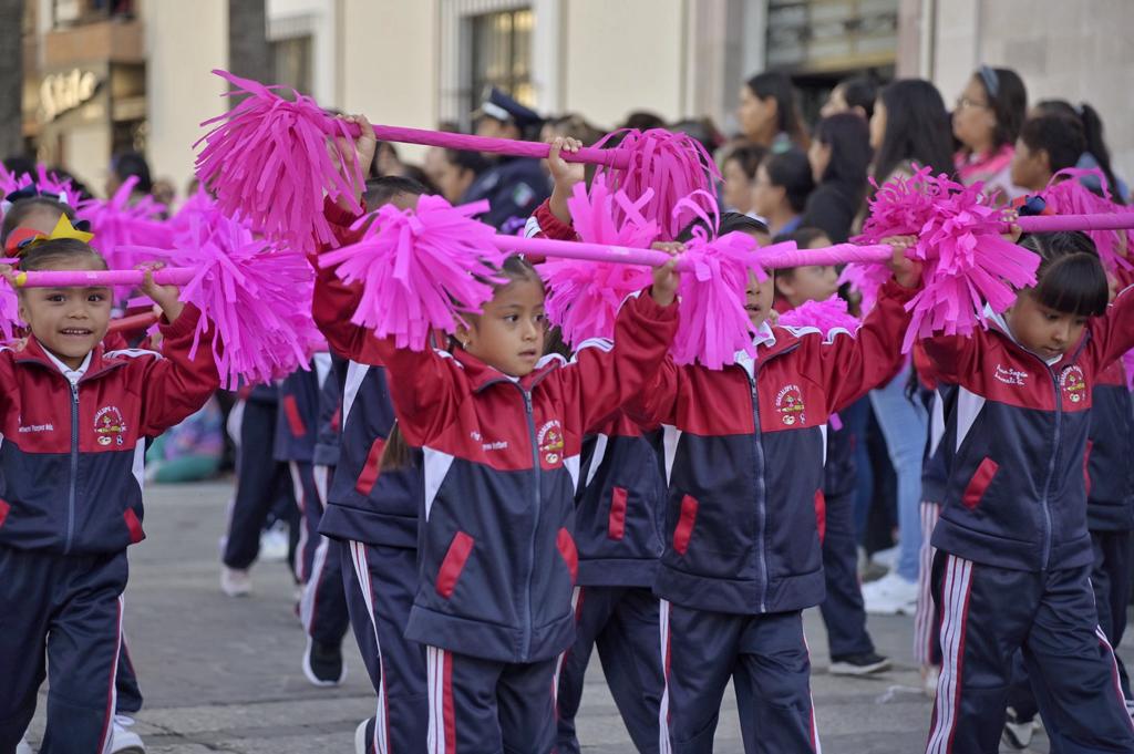 Fue así que esta mañana jardines de niños, primarias y bachilleratos desfilaron con tablas rítmicas, presentaciones de acrobacias, bailes folclóricos y demás para conmemorar el aniversario de la gesta revolucionaria.