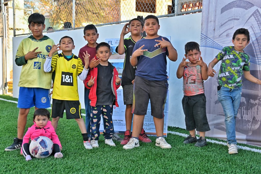 “La buena noticia, es que esto sólo es el comienzo, porque también vamos a instalar juegos, una lengua de resbaladilla, baños, un salón y muchas cosas para que ustedes tengan un lugar seguro donde jugar y sus mamás puedan hacer ejercicio, todo lo que se imaginan lo vamos hacer posible. Lo difícil, ya lo hicimos, que fue comprar el terreno y luego hacer esta cancha, pero no los vamos a dejar así, vamos por las siguientes etapas para completar el proyecto”, dijo el presidente municipal.