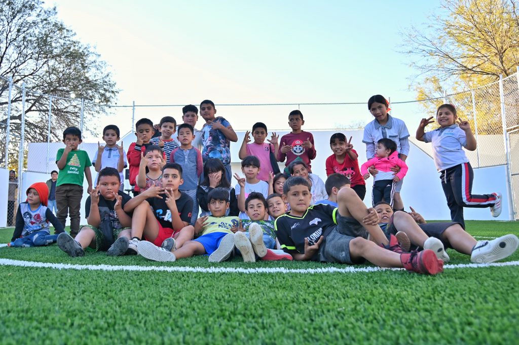 “La buena noticia, es que esto sólo es el comienzo, porque también vamos a instalar juegos, una lengua de resbaladilla, baños, un salón y muchas cosas para que ustedes tengan un lugar seguro donde jugar y sus mamás puedan hacer ejercicio, todo lo que se imaginan lo vamos hacer posible. Lo difícil, ya lo hicimos, que fue comprar el terreno y luego hacer esta cancha, pero no los vamos a dejar así, vamos por las siguientes etapas para completar el proyecto”, dijo el presidente municipal.