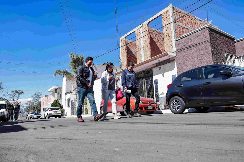 Autoridades del Municipio de Aguascalientes supervisaron la colocación de la sobrecarpeta asfáltica en la calle Cerro del Tepeyac del Ojocaliente Fovissste II, proyecto ciudadano que formó parte del programa “Presupuesto Participativo 2023”.