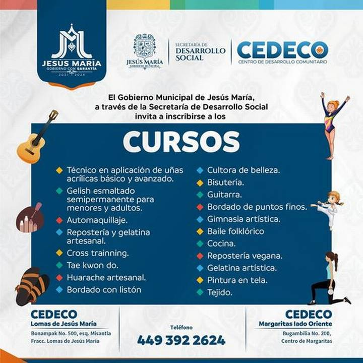Este mes de enero inician los cursos y talleres en los Centros de Desarrollo Comunitario (CEDECOS) de Jesús María, los cuales están abiertos para el público en general. Dichos talleres,…