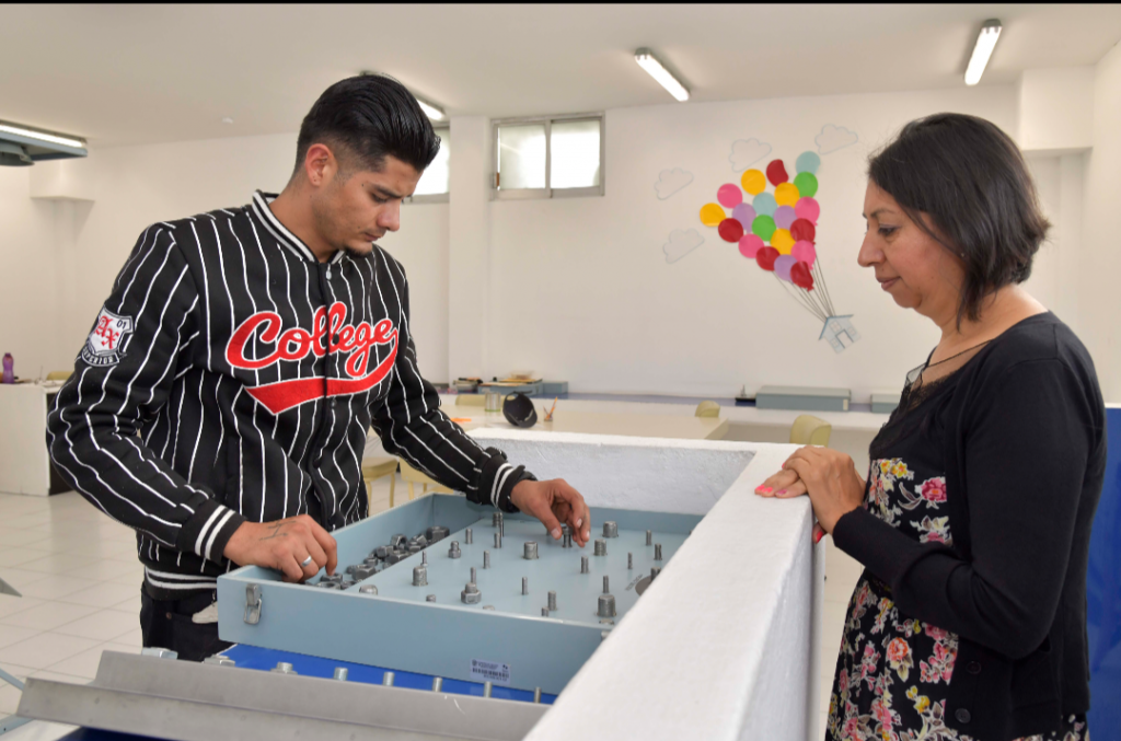 La presidenta del organismo indicó que de las 18 muestras de trabajo se seleccionan solo cinco para aplicarlas de acuerdo a la discapacidad o al perfil de cada persona, de las que destacan: supervisión, electricidad, manejo de herramientas pequeñas (mecánica) y prueba cubo especial para invidentes.