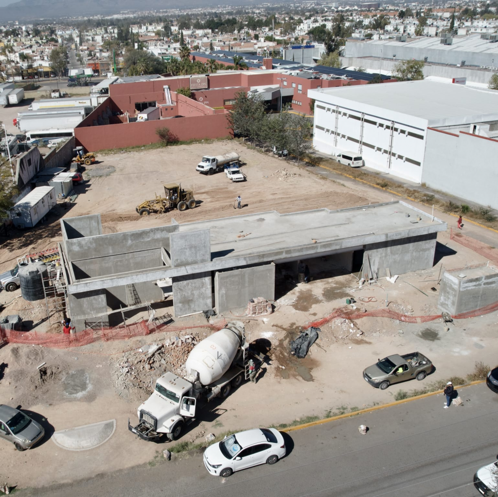 La Secretaría de Obras Públicas del Municipio de Aguascalientes (SOPMA) informa sobre los avances de la construcción de la primera etapa del Hospital Veterinario, en donde actualmente se llevan a cabo trabajos de acabado en muros.