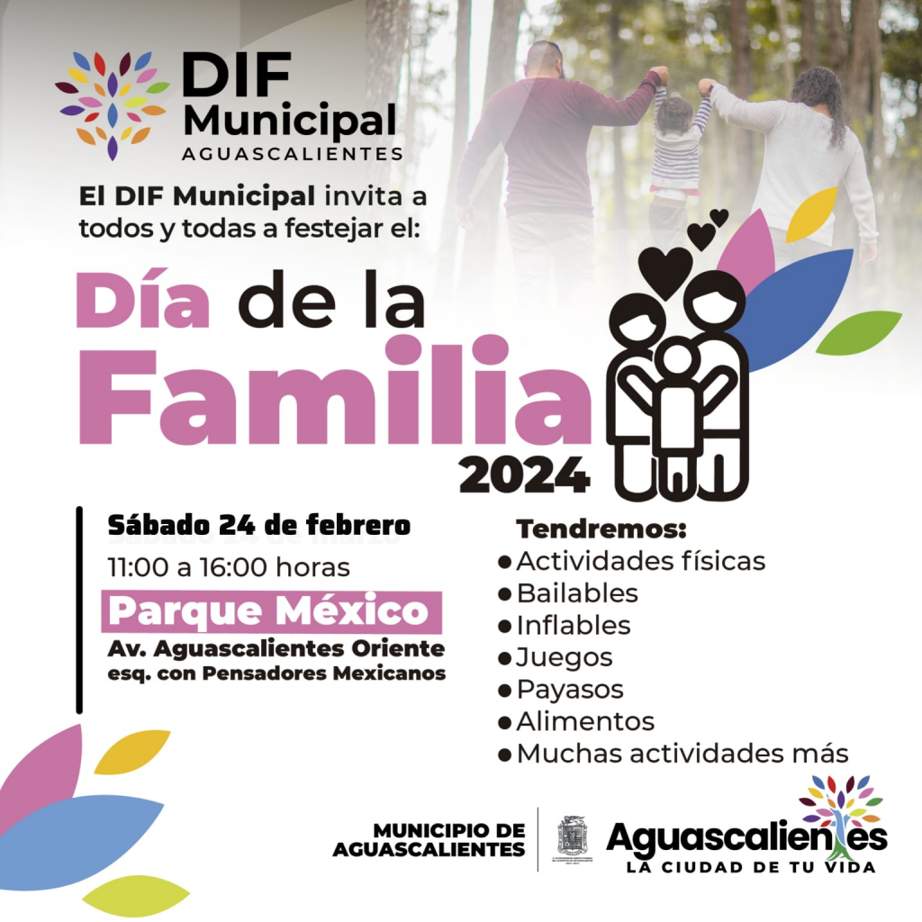 El Municipio de Aguascalientes a través del Sistema para el Desarrollo Integral de la Familia (DIF) invitan a celebrar el Día de la Familia, este sábado 24 de febrero en el parque México.