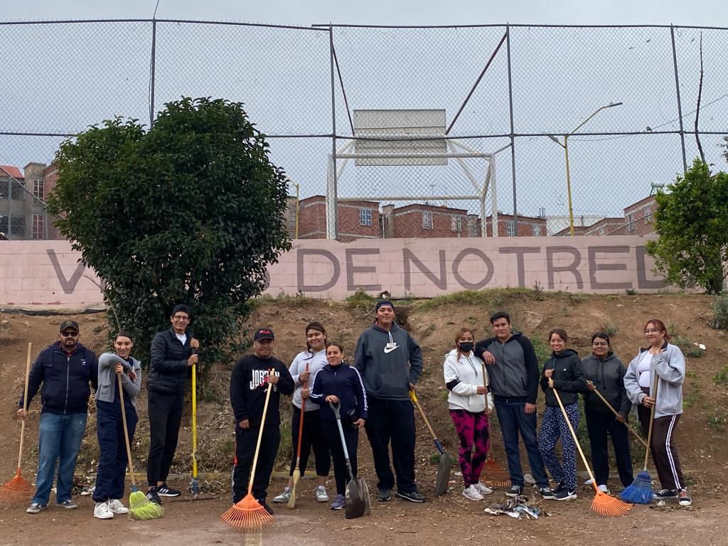 Como parte de las acciones de mejora de espacios públicos, el Municipio de Aguascalientes a través del programa Jóvenes Transformando tu Colonia, llevó a cabo tareas de limpieza en el fraccionamiento Villas de Notredame.