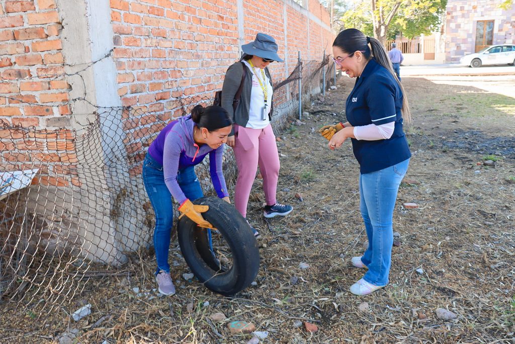 Cómo parte de las acciones de la campaña ¡𝐀𝐠𝐮𝐚𝐬 𝐜𝐨𝐧 𝐞𝐥 𝐃𝐞𝐧𝐠𝐮𝐞!, y como medida de prevención, vecinos y personal de Servicios Públicos y el ISSEA le dijeron adiós a los cacharros en esta comunidad, así mismo se invitó a la población a tirar botellas, llantas, latas o recipientes que puedan servir como criaderos de este mosquito y se les motivó a mantener limpias azoteas, patios y jardines en beneficio de la salud de las familias.