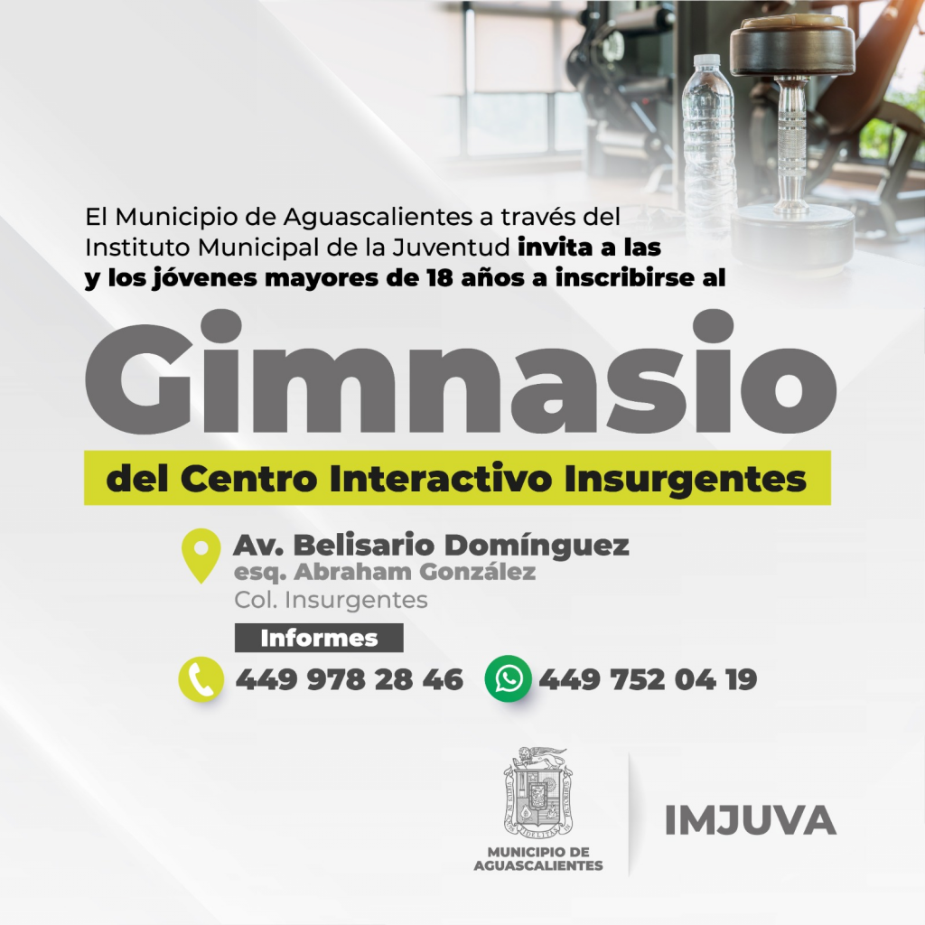 El Instituto Municipal de la Juventud de Aguascalientes (Imjuva) invita a inscribirse al gimnasio ubicado en el Centro Interactivo Insurgentes y practicar ejercicio para llevar un estilo de vida activo y más saludable.