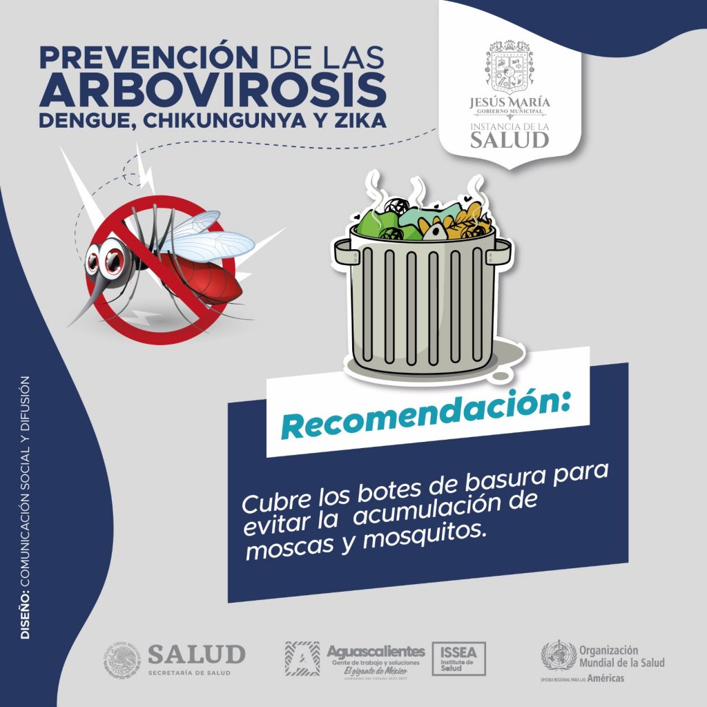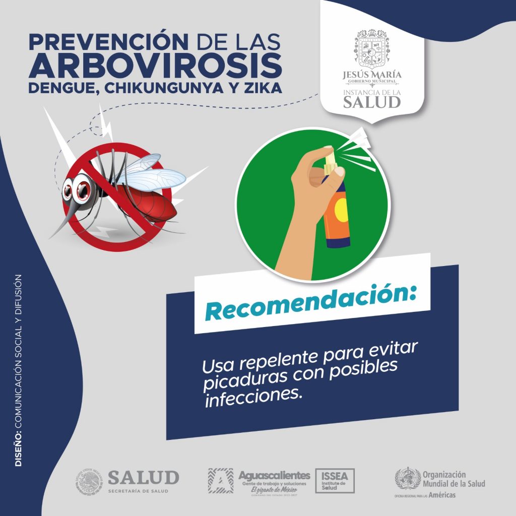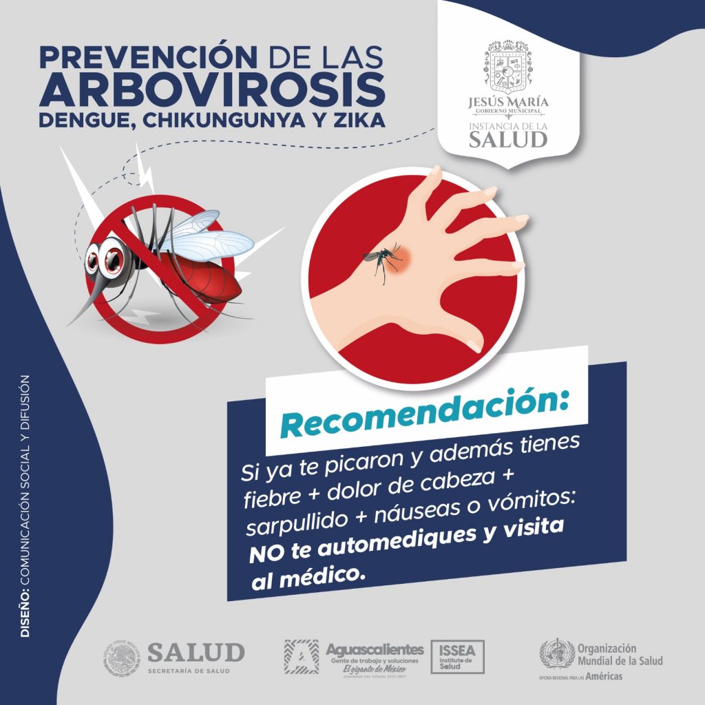 Con el objetivo de evitar infecciones arbovirales (dengue, chikungunya y zika) aquellas causadas por virus transmitidos por mosquitos y garrapatas, el Gobierno Municipal de Jesús María, a través de la Instancia de la Salud, emite algunas recomendaciones.