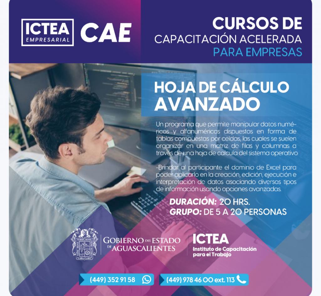 El Instituto de Capacitación para el Trabajo del Estado de Aguascalientes (ICTEA) invita a la comunidad empresarial a participar en una serie de cursos innovadores que fueron diseñados exclusivamente para que las empresas respondan a las demandas laborales actuales y al florecimiento de nuevos negocios.