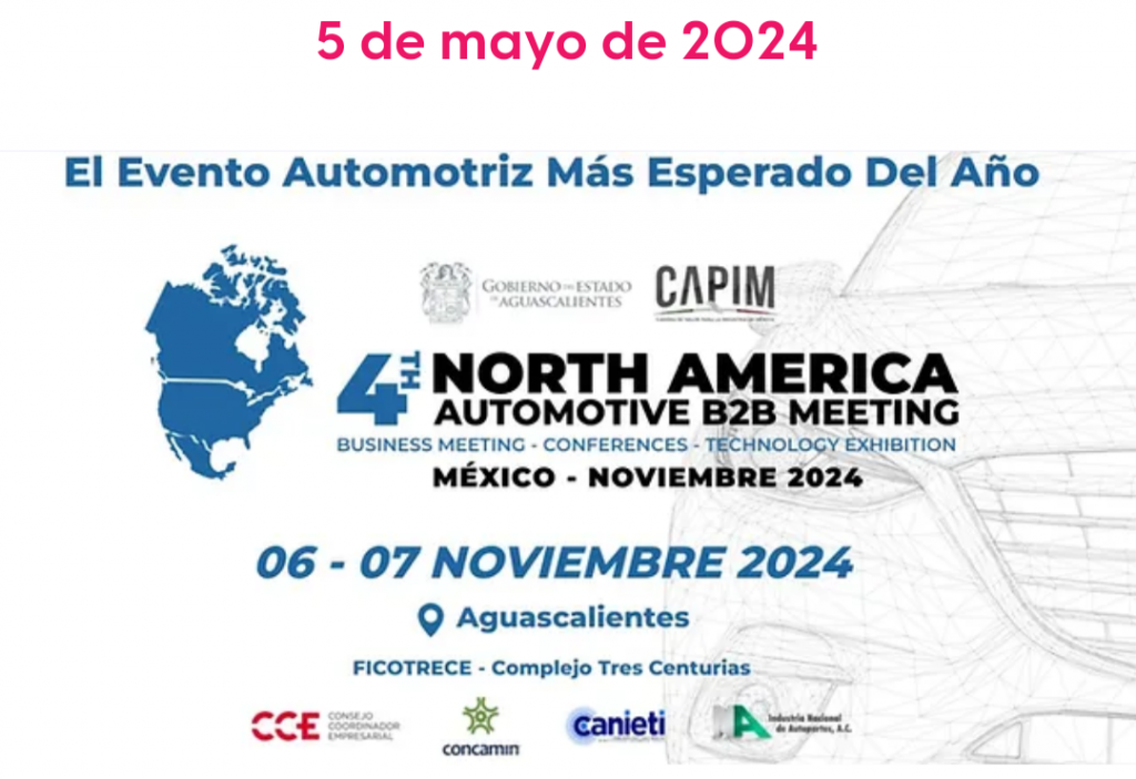 El Gobierno del Estado informa que, por cuarto año consecutivo, Aguascalientes será sede del North America Automotive B2B Meeting, que es el encuentro de negocios de la industria automotriz más grande en México y Norteamérica, organizado por la Asociación de la Industria Nacional de Autopartes (INA) y la Cadena de Proveedores de la Industria en México (Capim), con el apoyo de la Secretaría de Desarrollo Económico, Ciencia y Tecnología (Sedecyt).