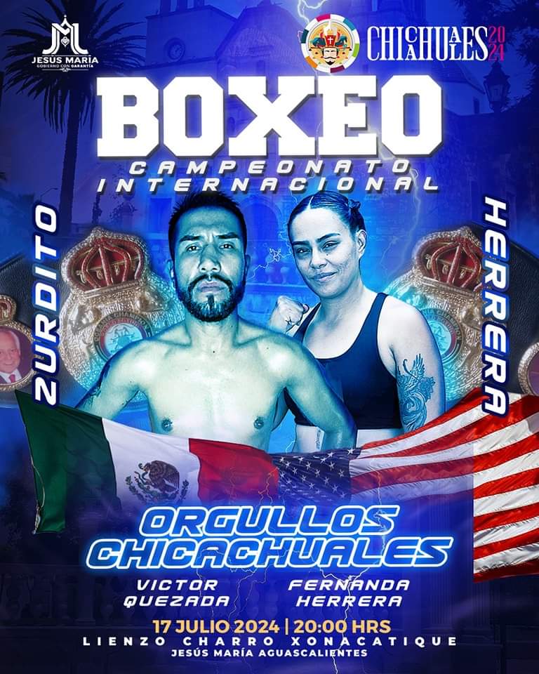 El 17 de julio el Lienzo Charro Xonacatique será testigo de la disputa por el título internacional de box, en el que participarán Víctor “El Zurdito” Quezada y Fernanda Herrera, boxeadores profesionales ejemplo de juventud y dignos representantes de Aguascalientes y Jesús María, impulsando así el boxeo local.