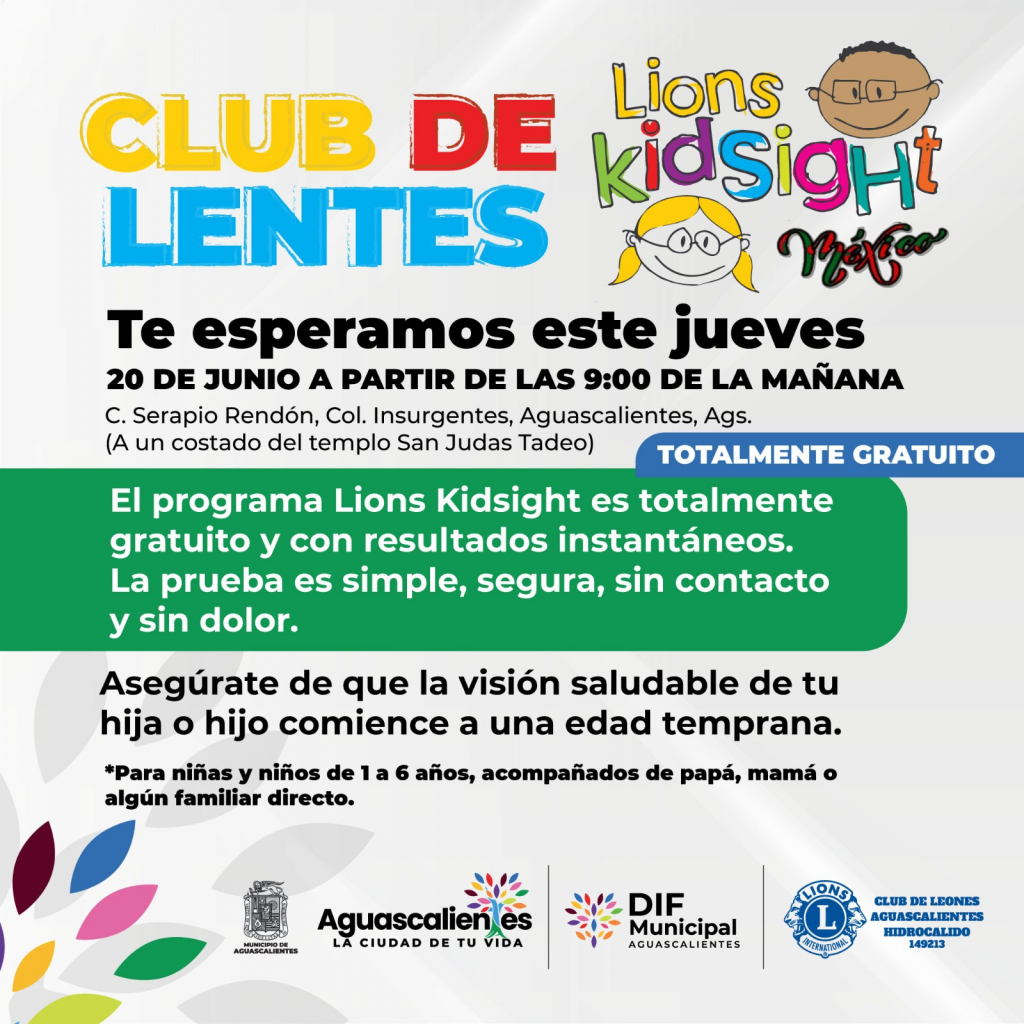 El DIF Municipal de Aguascalientes en conjunto con el Club de Leones Ags Hidrocálido, llevarán a cabo el programa “Lions Kidsight” que tiene como objetivo ayudar a identificar enfermedades oculares que puedan causar la ambliopía (ojo vago), así lo informó Zayra Angélica Rosales Tirado, directora general de esta institución.